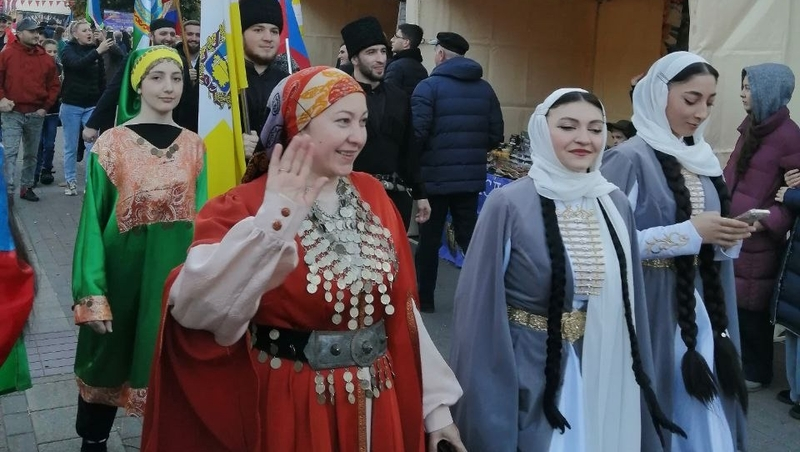 Этно-парад стал ярким акцентом праздника, символизируя единство и сплоченность народов Кавказа. Представители разных национальностей торжественно прошли по Курортному бульвару, демонстрируя великолепные наряды. Каждый традиционный костюм имеет свои особенности. Так, мужское грузинское облачение символизирует мужество воина и его боевой дух. Женский костюм украшает сложный головной убор — мчак, он подчеркивает женственность и социальный статус его обладательницы. Геометрическим и растительным орнаментам придавали защитное значение. В карачаевском наряде преобладают ромбы, спирали, деревья. У осетин символика скрыта в узорах, которые считались магическими.