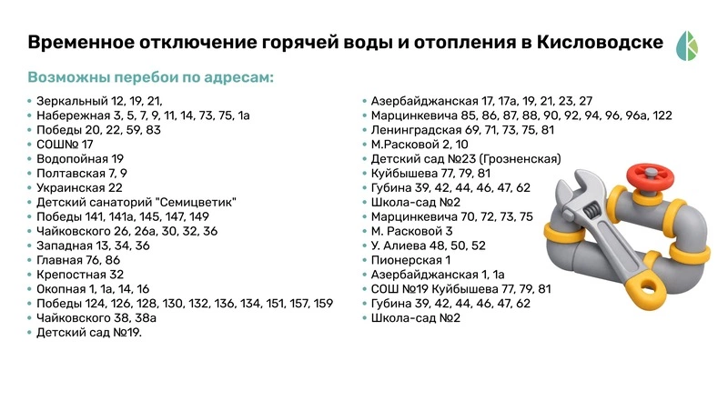 Полный список домов, попавших в зону отключения, — в инфографике «Портала Кисловодска».